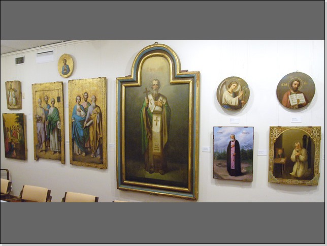 Salmin kirkon ikoneja Iisalmen Evakkokeskuksessa.